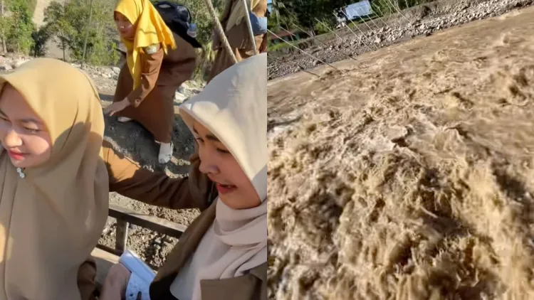 Momen menegangkan guru di Aceh seberangi sungai pakai tali sling demi masuk sekolah
